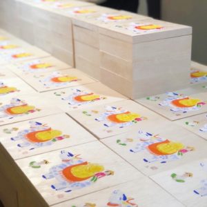 お箱ひとつひとつに縁起絵を描いていただきます。