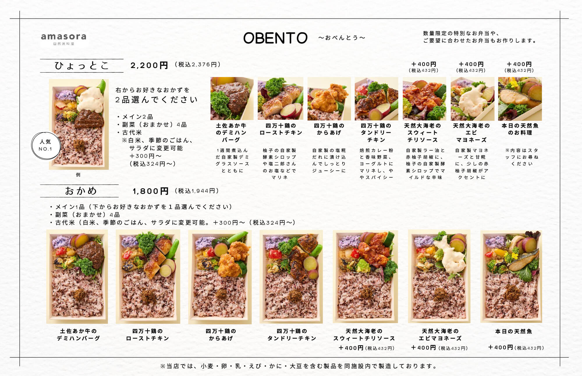 ご予約なしで、お店にてご購入いただけるおべんとうです。